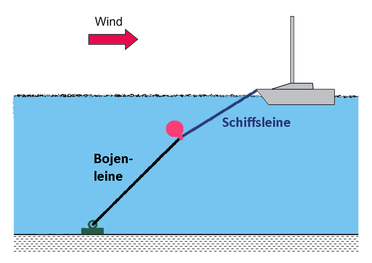 Wassertiefe hat. Meist ist die Länge dieser „Bojenleine“